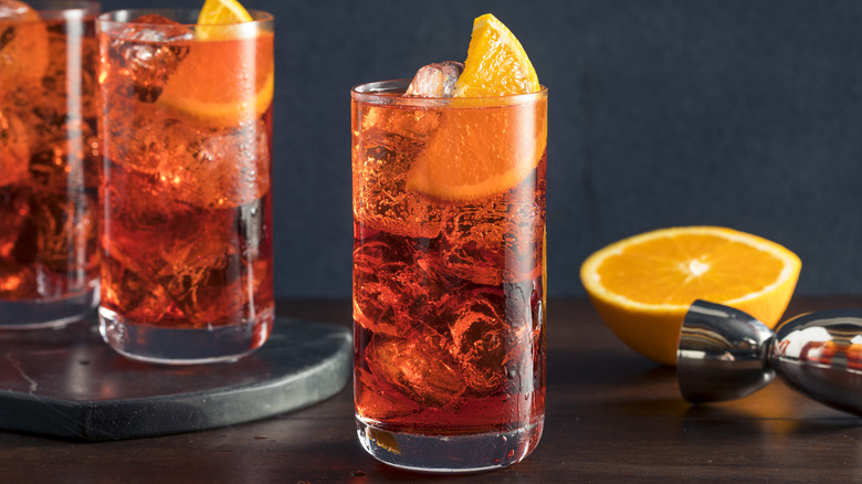If you're anything like us, you've probably ordered your fair share of Aperol Spritzes in your drinking career — and we applaud you! As much as we love everyone's favorite bubbly summer drink, there are a plethora of Aperol Spritz alternatives out there that you should consider adding to your repertoire, especially the Campari Spritz. It's similar enough to an Aperol Spritz that it will seem familiar, but it's boozier and noticeably more bitter.