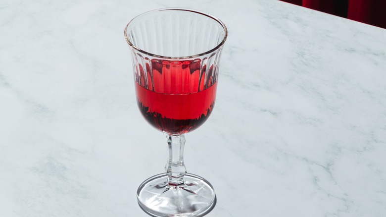 These days, people tend to sleep on this chilled, slightly effervescent red wine, but it's actually delicious and highly quaffable — and you should definitely order a glass if you see it on offer at a bar. Now, you're probably not going to find this at your local dive, or even at a cocktail bar for that matter. You will find it at a wine bar or even on an Italian restaurant's bar menu.