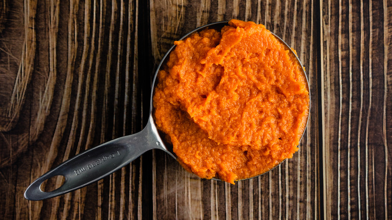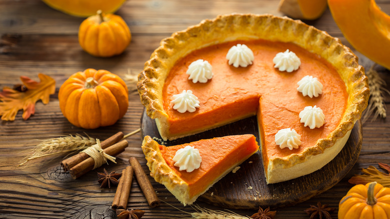 As soon as the pumpkin spiced latte popped up at Starbucks (and even before that), we were in fall pumpkin mode. There's not as much buzz about a classic pumpkin pie recipe as there is about novelty treats like Wendy's Pumpkin Spice Frosty and Salt & Straw's new festive pumpkin spice flavor, but there are still plenty of tricks you can try to elevate this fall dessert. One of the most criminally underrated? Caramelizing your pumpkin purée.