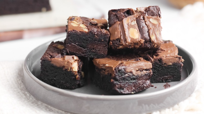 One great example of this phenomenon is our ultimate fudgy brownies recipe. Prepare this by melting the butter first, before letting it cool for a few minutes, as Ina Garten does. Then add brown sugar and whisk. Add the eggs, vanilla extract, cocoa powder, and flour, and cook the brownies for 35 minutes at 350 F. Remove the brownies from the oven while they're still slightly gooey in the middle — a little extra softness never hurt anyone. (We think.)