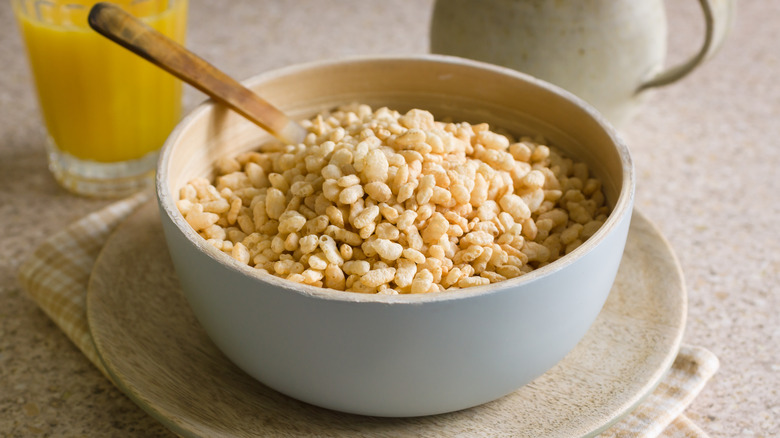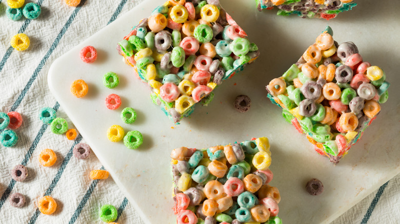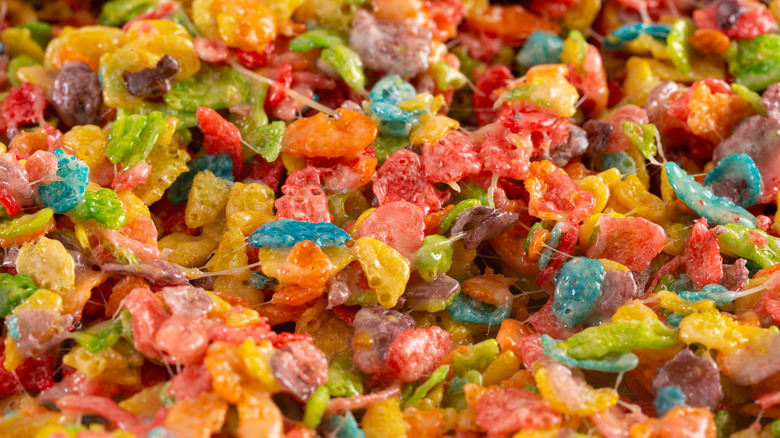 You can make homemade rice crispy treats with Fruity Pebbles for a blast of color and flavor (although we can't really pinpoint what exactly that flavor is). Or, stick with the Kellogg's brand product and go with Cocoa Krispies instead. The latter fares much better with adults and can complement other mix-ins like chocolate candy, caramel, or cookie pieces. Kellogg's will occasionally release seasonal Krispies cereals, like its Shocking Orange Colored Cereal, so set your sights on the grocery store aisle for inspiration.