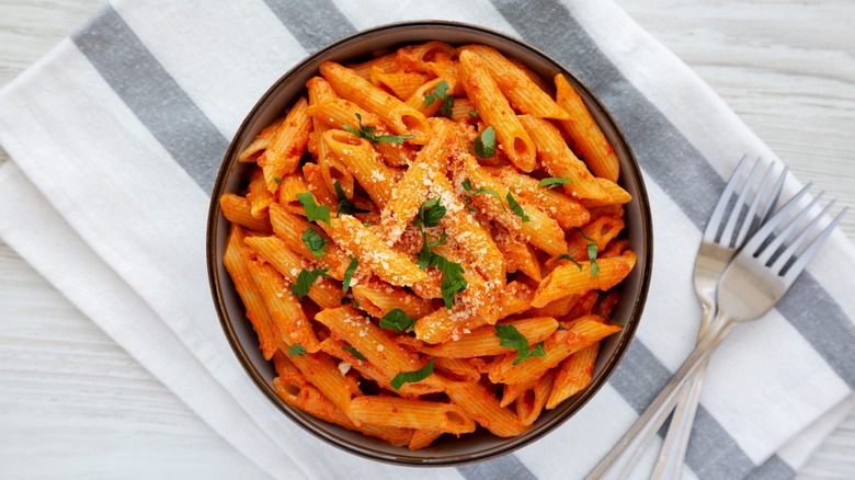 There's no better comfort meal than a plate of warm, creamy pasta. The rich and luscious recipe is made with heavy cream and tomato paste, whisked together in a pan to create a decadent sauce for the pasta of your choosing. The sweetness from the cream and acidic tomato balance the other out, creating a creamy, cozy meal that never gets old.