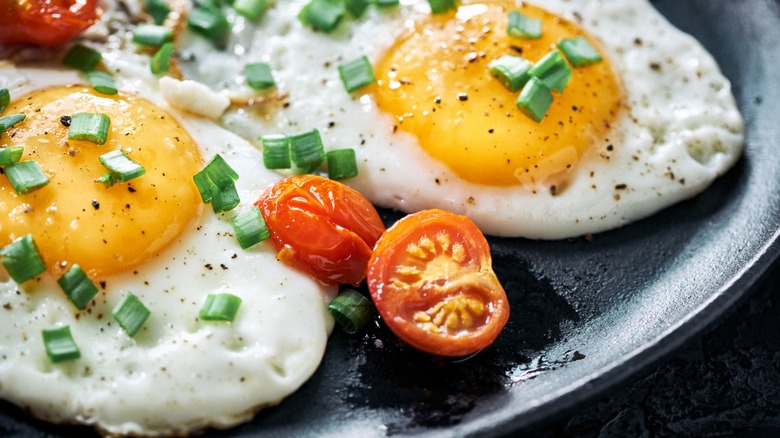 There are various ways to enjoy this fried egg and vinegar combo. First, once you've fried the egg to your liking — whether over-easy, over-medium, or over-hard — simply drizzle some wine vinegar on top and let it sit for a few seconds, allowing the flavors to meld. The tangy vinegar and creamy egg combination is absolutely delicious.