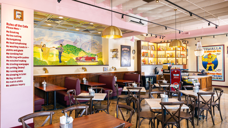 You can also find chai accompanied by bun maska, an Irani take on a fluffy roll — but don't expect the chai of your favorite coffee chain. For more British-inspired snacks, you can pair your chai with crumbly cookies like Parle G, British-style biscuits that are a top seller in India. Botiwalla also serves bread with butter and jams — a take on an English high tea. Given the distinct nature of all the food options, it's only fitting that Irani cafes create an ambiance that lives up to their diverse menus.