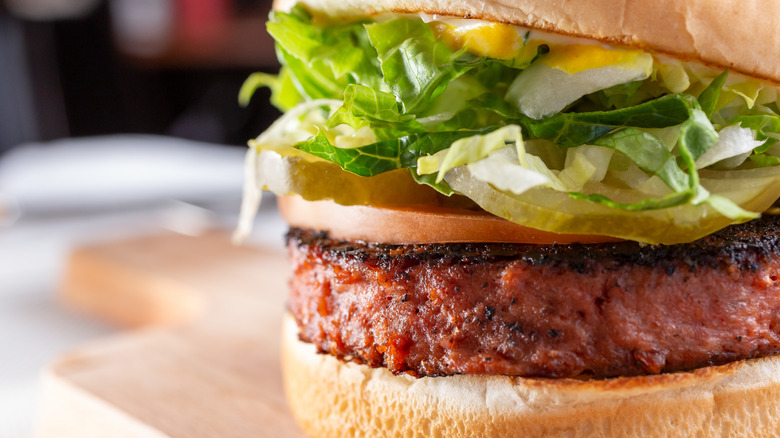 Fake meat products like Impossible and Beyond, which were designed to look and taste like meat, are on the rise. In fact, you've most likely seen these innovative imitation meat products on restaurant menus in your town, including at fast food chains, casual sit-down spots, and even upscale dining destinations. In addition to adding these "meat patties" to the menu, restaurants are also swapping out previous veggie options, like black bean burgers, for new fake meat products.