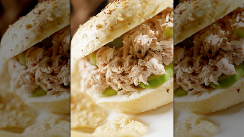 This isn't a suggestion that should come out of left field. How many of us have asked for a bacon, egg, and cheese breakfast sandwich on a bagel? No one can doubt the baked good's ability to be sandwich bread, so why not try it with tuna? The great thing with bagels, too, is that you have endless variety in terms of bagel type. Obviously, cinnamon raisin might not be the best for a tuna melt, but plain, egg, poppy seed, sesame seed, everything, onion, garlic, rye, sea salt, or pumpernickel bagels all go great with tuna.