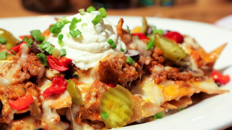 Two things that seem perfect enough to not need any messing with are lasagna and nachos, but that's before you think about the prospect of combining them. The crispy crunch of nachos is already a great pair with cheese and tomato salsa, so it's not that far of a leap to imagine some melty mozzarella and marinara sauce on chips. But if you want true Italian-inspired nachos, you can't stop with just the sauce. Lasagna noodles can be transformed into wonderfully robust and crunchy chips that can hold up to the weight of toppings and deliver the full pasta experience you're looking for, just in nacho form.