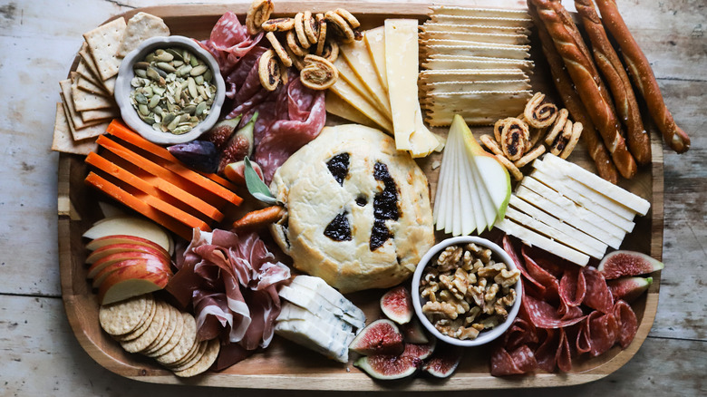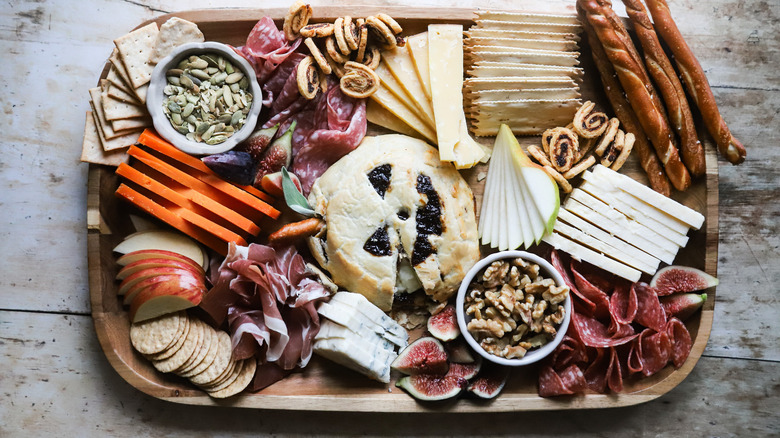 - Assorted cheeses, cured meats, crackers, fruit, and nuts