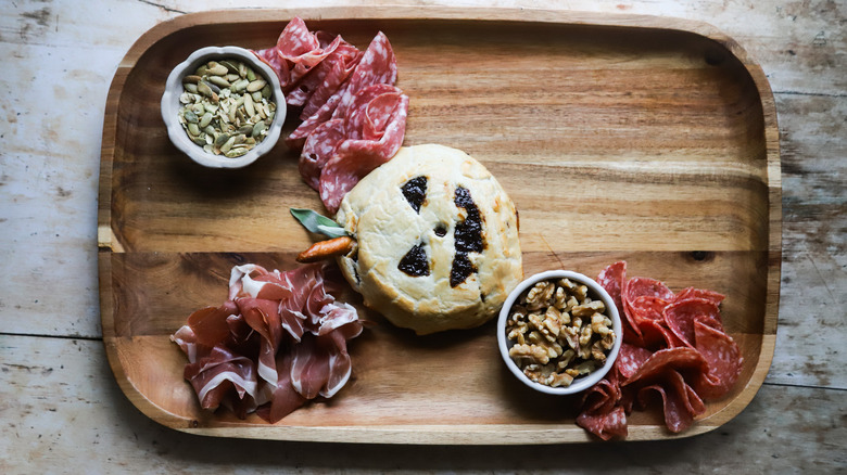 To make things extra festive, a baked brie fashioned like a jack-o-lantern not only elevates the Halloween spirit but also serves as a delightful centerpiece that marries both the tradition and culinary artistry of the occasion. This ensures that the adults too have their own special treat, allowing everyone to partake in the holiday. Recipe developer Taylor Murray walks us through how she makes a charcuterie board with a spooky feeling.