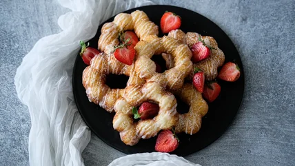 You may be familiar with mochi ice cream now that it's standard in supermarket freezer sections, but have you tried mochi donuts? While you might think these donuts come from Japan, it seems the recipe is a more or less American creation –- the first version was developed in Hawaii (also the home of butter mochi) and made with both poi and mochi, although it may have taken its inspiration from the donuts sold at a Japanese chain founded by an American. Well, whoever or however these donuts came to be, they're some of the prettiest, tastiest ones you'll find anywhere.