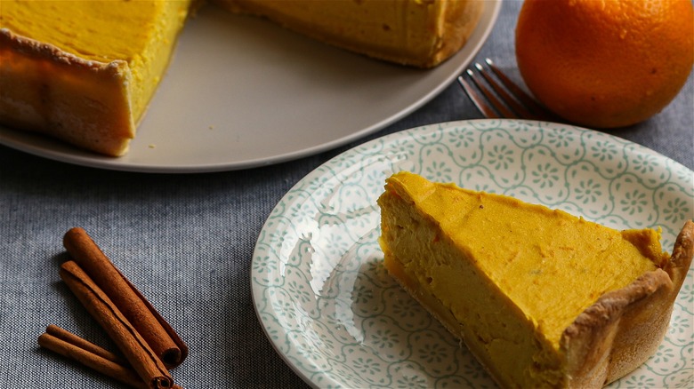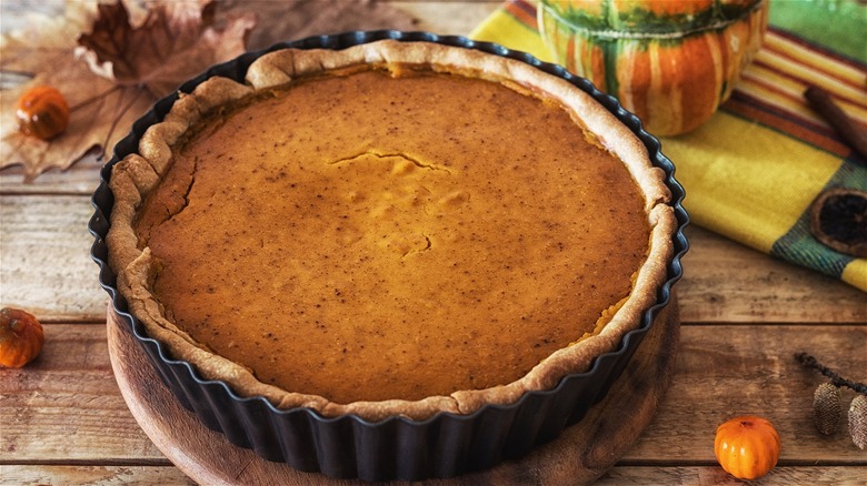 Italian-American chef Giada De Laurentiis knows how to bring Italian flavor to the table, and she's even found a way to bring it to the Thanksgiving dessert table with her pumpkin pie. De Laurentiis's pumpkin pie recipe calls for both whipped cream cheese and mascarpone cheese in the pumpkin pie, making the already-creamy dessert even more decadent and rich (via Giadzy). The resulting pie has a texture that's almost as luxurious as a cheesecake but is still firmly in pumpkin pie territory.