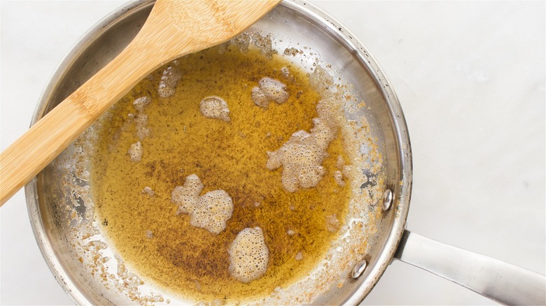 Browned butter gives a deeper, nuttier flavor to the pie, but Saffitz says that warming the dairy also helps your filling to cook. With any dessert dish, browning the butter is a way to gain more flavor from regular butter, so it's a worthwhile step to elevate a dish, especially when you want things to be more special for the holiday table. Just be careful not to burn your butter!