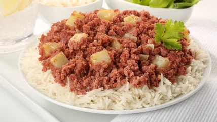 For an aromatic enlivening of canned corned beef, turn to a Jamaican dish known as bully beef. Assembled in minutes, the food craftily dresses up preserved meat into a dish bursting with flavor. Part spicy, sweet, and deeply savory bully beef is a liquidy stew-like creation, perfect when served atop a hearty side.