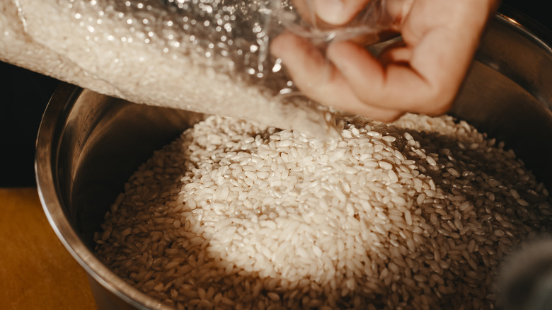 So, you've decided to make paella, perhaps the most famous Spanish dish of all time. To do it right, a few things are indispensable — and oddly, your choice of protein isn't one of them: Paella can feature everything from lobster to rabbit to artichokes or some combination thereof. One of the things you'll definitely be needing (besides a healthy amount of saffron) is a large, round, flat, and shallow two-handled pan (the dish's name comes from the Spanish word for frying pan) because that's how you'll best achieve the socarrat — that crisp, caramelized crust that forms at the bottom of the paella. Socarrat's key ingredient is starch, so you're going to need a magical, short-grain, starchy paella rice that absorbs a ton of flavorful liquid. Luckily, such a thing exists and is called Bomba rice.