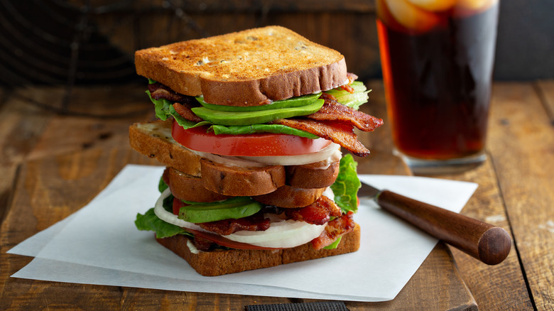 But you don't have to stop at seafood to upgrade your BLT. You're missing out if you're not adding fried eggs to BLTs – the eggy flavor perfectly complements the three other ingredients and the runniness from the egg only enhances the texture of the sandwich. Another classic ingredient that fits right into a BLT is a slice of your favorite cheese. This addition is made even better if you turn the sandwich into a panini, as Puck advises in his cookbook. Other ingredients that will make the BLT even better include sliced avocado, bell peppers, or sprouts.