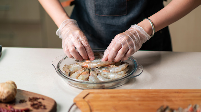 What type of seafood should you fill your baked potatoes with? It depends on what you enjoy eating, of course, but a few popular options are shrimp, crab meat, crawfish tails, and lobster tails. You can go with just one of these, or mix and match two — but we wouldn't recommend any more than that, since baked potatoes can easily get overwhelmed with too many toppings. Make sure to get your seafood ready to cook and eat before doing anything else, which can mean peeling and deveining your shrimp, mincing your crab meat, removing the shells, and cutting your lobster tails.