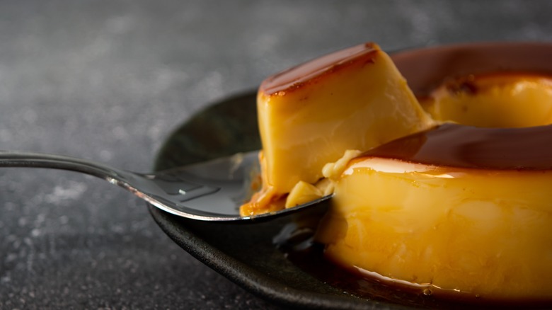 Flan doesn't traditionally have alcohol in it, but when you consider the depth and complexity of good bourbon — and imagine it in among the sweet, caramelly, eggy notes in flan, it's kind of a no-brainer. You can use any old bourbon you have on hand, but if you really want to bring out the dark caramel notes in your flan, try using a sweeter bourbon. Many bourbons are distilled to have caramel and vanilla notes that play up the bitey sharpness in your flan recipe.