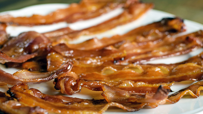 The gooeyness of the cinnamon roll paired with the crunchy bacon makes a perfect blend of textures. Make the maple cinnamon candied bacon, coarsely chop, and then add to your rolls. It only takes a few minutes, so it's perfect for when you're in a quick pinch. Plus, it makes the house smell incredible. You can easily top the rolls with the prepared bacon if you have ready-made, store-bought cinnamon rolls. If you have refrigerated cinnamon rolls that need to be baked, you could place a few bacon pieces into the cinnamon rolls as well as on the top. This easy hack will take your cinnamon rolls to the next level.