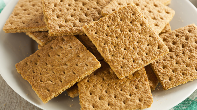 To elevate this even more, opt for cinnamon graham crackers for extra cinnamon goodness. You could do a honey graham or chocolate graham or test something out of the box like Goldfish s'mores grahams or Annie's Neapolitan Bunny Grahams. There are lots of graham flavors and shapes out there, but whichever one you end up choosing, a graham cracker base will be completely unexpected.