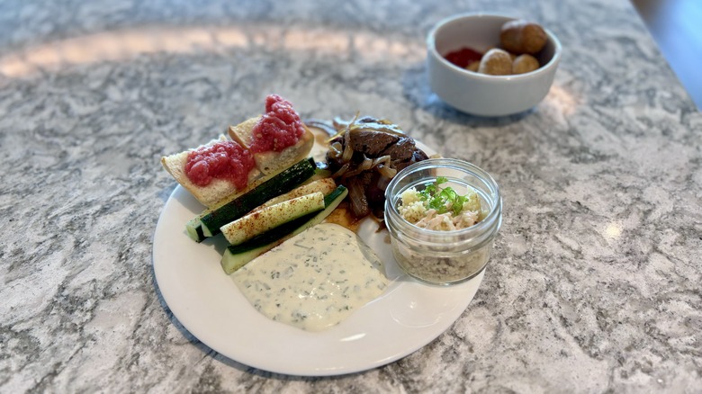 If you tend to be a snacker around dinner time or just want something to tide you over for a later meal at a different location, the offerings here are perfect. We also really liked the charcuterie assortment, and it even had accompaniments like fig jam to enjoy alongside the cheeses and meats. One option typically available at both lunch and dinner was cut vegetables and dips. I fell in love with the lounge's homemade ranch offering. It was so bright and refreshing, and along with those cucumbers, it was the perfect light snack after lunchtime and dinner.