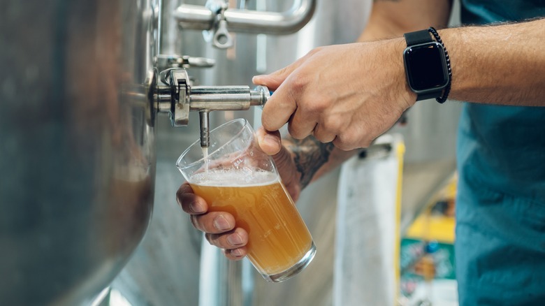 If you're a beer connoisseur, you might know that "butterbeer" isn't a thing of total fiction — even when excluding the licensed novelty drinks found at theme parks. Every now and again, you'll find a beer that has the faint taste of buttered popcorn despite being fresh from the tap or bottle. While this may not sound unpleasant depending on your tastes, it begs the question of how it found itself in the beer to begin with. The answer lies in a chemical compound produced during the manufacturing process: diacetyl.