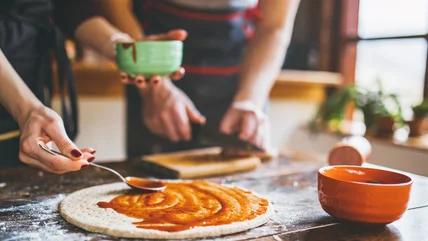 Incorporating Calabrian chiles into your pizza sauce recipe is an easy step that doesn't require any other alterations. The amount of chiles to use will vary based on how spicy you like it, but you can start at 2 chiles for a standard sauce recipe using one 28-ounce can of tomatoes. Dice the chiles, and then add them to the pan to cook for a few minutes alongside your onions and garlic. Follow the rest of your recipe as normal, and you'll get a bright and fruity pizza sauce with an irresistible spicy kick.