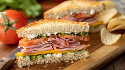 To ensure the meat on your at-home deli sandwich is sliced nice and thinly for making a range of classic American sandwiches, it's best to go to the deli counter at your local grocery store or butcher. Ask for your meat to be sliced about an ⅛ inch thick, or a bit thinner if desired. It shouldn't be paper thin or too delicate (with the exception of prosciutto), though, since shaved meat can get lost in the strong flavors, textures, and crusty bread of a deli sandwich. Of course, packaged sliced meats will also do for your at-home creations. But for proteins like roast beef or ham, buying it sliced at the deli ensures more control over thickness and a rustic freshness.