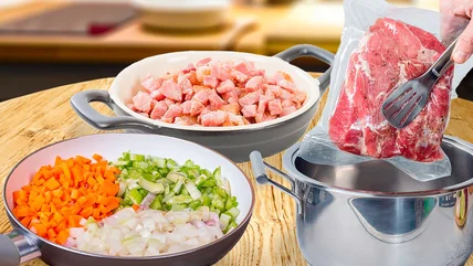 Bone broth is a crucial ingredient in most kitchens. It's a flavorful foundation for soups and sauces and it is an efficient use of bones that would otherwise just be trashed. The first round of bone broth tends to be very potent and rich in nutrients. But did you know that you can make a second round of broth using the same bones and fresh vegetables? This second, weaker stock is called a remouillage. While not nearly as flavorful as the first batch of broth, this remouillage is still well above just using plain water for making rice, pasta, or boiling potatoes. You can even get meta and use this remouillage to make your next fresh batch of bone broth, compounding the flavor.