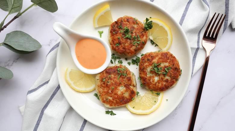 Sweet and briny or savory and nutty, classic Maryland crab cakes are traditionally served with a wedge of lemon, a creamy and tangy remoulade sauce made of mayonnaise, spicy mustard, and herbs, or a delicious tartar sauce; however, "Bizarre Foods" host Andrew Zimmern has a different take on the toppings he uses for this traditional seafood. Zimmern bucks culinary conventions, opting for Russian dressing and tomato. On his website, he states, "If you haven't eaten a cold crab cake on toast with sliced tomato and Russian dressing, then you're missing out."