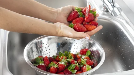 Did you know some fruits should be sprayed clean while others should be soaked? While for dense fruits, a quick spray is generally sufficient, porous fruits that are easily penetrable by bugs and microbes will benefit better from a vinegar soak. To make your own rinse, simply combine one part distilled white vinegar (or apple cider vinegar) with three parts water. Whether you put that in a spray bottle or bowl will depend on the type of fruit you're washing.