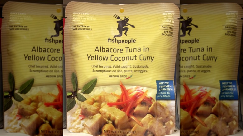 But what do you actually get from these pouches? With StarKist's Hot Buffalo, "light tuna" is listed as the first ingredient. But you'll also get a coating of spicy Buffalo sauce made with aged cayenne peppers. The seasoned fish is meant to be used right out of the package (and it can even be consumed that way), but it can also be the perfect starring ingredient in a tuna patty, so feel free to put your seasonings back in the pantry.