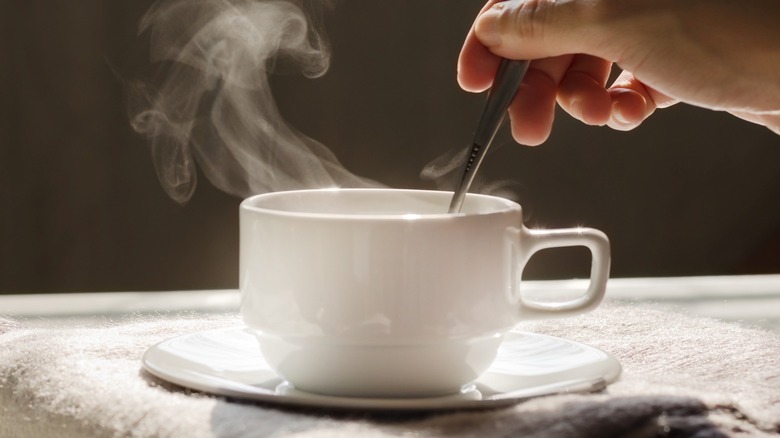 Stirring may be a natural impulse, but it isn't actually that effective when it comes to cooling down hot drinks or other liquids. According to New Scientist, stirring does accelerate the natural process of convection, in which the hottest liquid circulates from the bottom and middle of a container to the surface, where it then loses its heat to the air. So, technically, it does lower the temperature of your beverage — but only slightly. In fact, stirring for 10 minutes straight will only drop the drink's temperature by a couple of degrees. That's a lot of work for a pretty small result that will happen without your intervention, anyway.