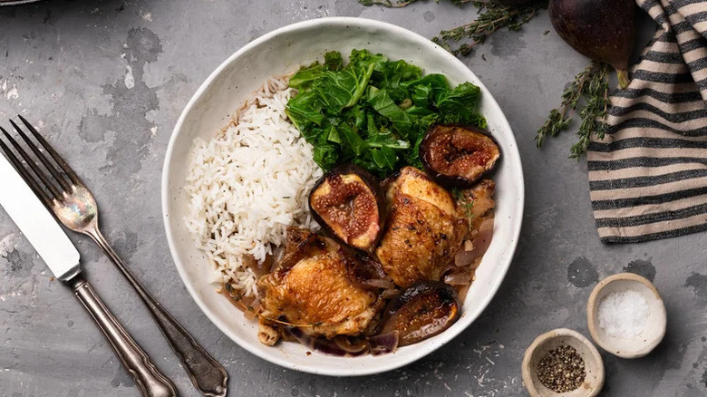 You may not immediately think to add fruit to your meat, but by pairing your chicken with fresh figs, you'll get a warming autumnal dish you'll want to enjoy all season long. The balsamic in this recipe brings out the sweetness of the figs while adding a touch of much-needed acidity, and garlic, thyme, and whole-grain mustard give the dish a bold flavor you might not expect from a fruit-focused meat dish.
