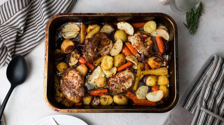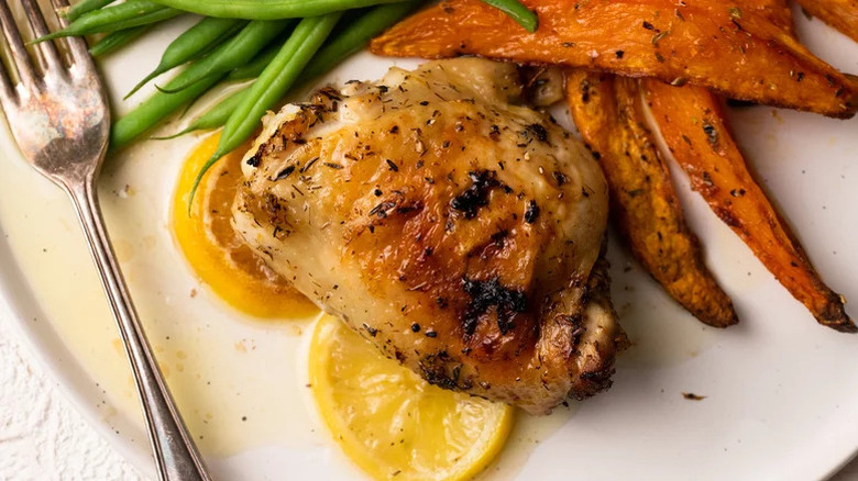 There are few ingredients that can brighten up a dish like lemon, which is exactly why we're such big fans of this roasted lemon chicken dish. Both lemon juice and lemon zest join forces to create a marinade for succulent chicken thighs.
