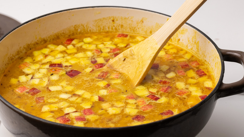 Mulligatawny soup is an adaptation of a traditional Indian broth, known as molo tunny, or "pepper water" (via The Guardian). This spiced broth was modified to suit British culinary tastes of the time and to accommodate the availability of the ingredients. Mulligatawny soup is both filling and very nutritious, with the inclusion of spices and curry powder giving an extra dimension of warmth to the soup (and who doesn't love a warming soup?), and the coconut milk adding a richness and sweetness.