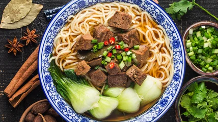 Ubiquitous in Taiwan, this beef noodle soup is enjoyed at small restaurants and markets throughout the country. Yet despite its casual nature, it carries serious esteem. Several eateries known for serving it are noted in the Michelin guide, and the dish is even celebrated at an annual Beef Noodle Festival. Such intense competition means the food has taken on an array of refined forms. An especially popular version is called hong shao niu rou mian — and it may just be your new favorite comfort food.