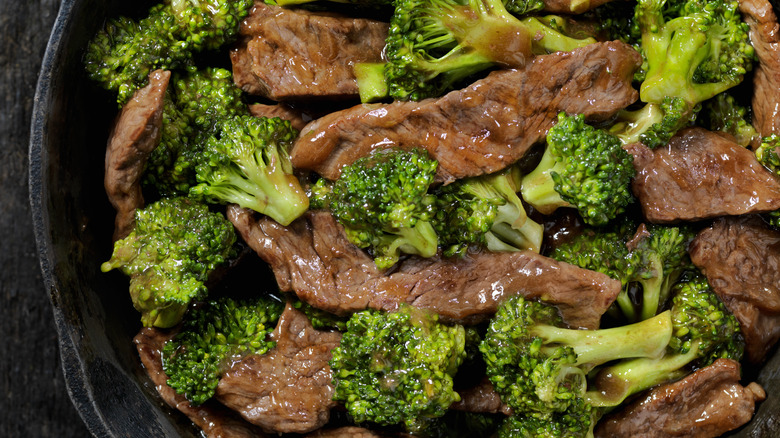 If you've ever enjoyed beef and broccoli, be it a homemade version or takeout, then you understand that there really is a lot to love in the dish. On the surface, it seems so simple — it's just beef and broccoli! — but there is much more flavor to behold. The thinly sliced flank steak contrasts nicely with the slightly bitter broccoli, and combined with a sweet and salty, tangy sauce, this is one simple dish that's anything but boring.