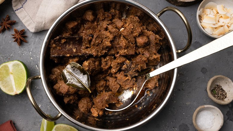 If you've heard of beef rendang, then you might recognize it as having origins in Indonesia or Malaysia. The dish technically originated in West Sumatra, Indonesia, but nowadays, there are a few South Asian countries that retain claims on the coconut milk-braised beef dish. Luckily, there's plenty of beef rendang to go around, and while you would no doubt find the tastiest variation of the dish if you traveled through South Asia, you can make a version that's pretty good right at home.