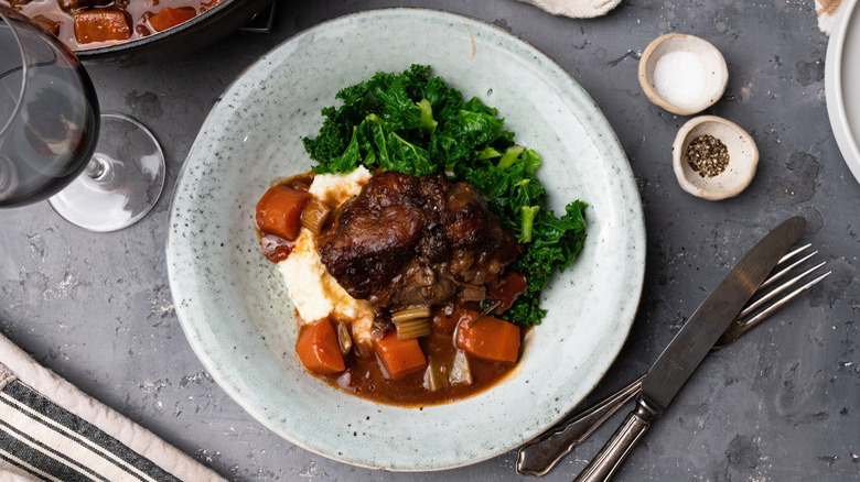 Like most types of stew, you can't go wrong pairing your oxtail with classic vegetables like onion, carrots, or potatoes. Oxtail is an incredibly flavorful cut of cow to cook with, rich in fat, but you'll want to keep in mind that oxtails are not consistent in their yield, unlike a roast or steak. Still, it is one flavor that will spruce up your dinner routine and ensure that your stew is anything but boring.