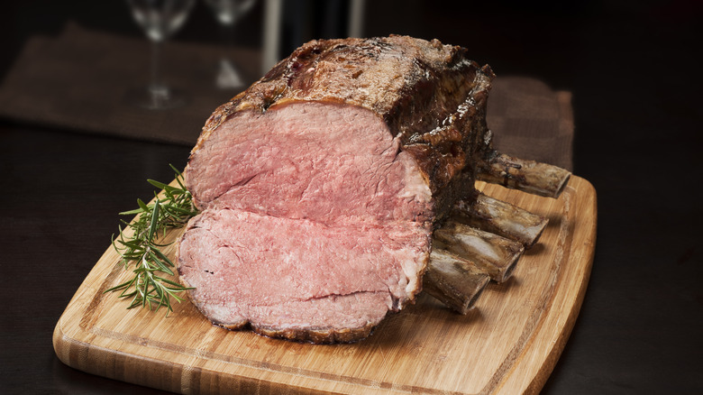 While many people opt for turkey or ham as star proteins during the holidays, there's one beef option that presents with just as much elegance: prime rib. As the name suggests, prime rib comes from the ribcage area of a cow, and due to its bone-in appearance, it's sometimes referred to as a standing rib roast. Regardless of what you call it, there's no denying that a perfectly cooked, medium-rare prime rib is a true delicacy comparable to a rack of ribs or Thanksgiving turkey.