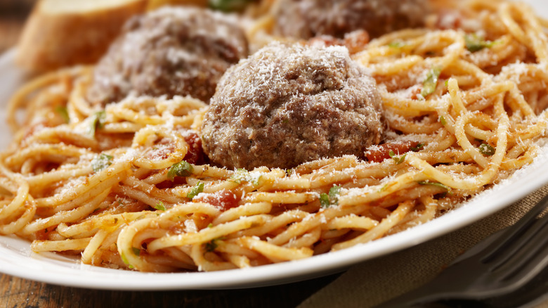 Is there anything better than a big, heaping plate of spaghetti and meatballs? If you answered that question with a resounding "no," then it only makes sense that you enjoy spaghetti and meatballs as often as possible. To do so, you should probably venture outside of ordering the dish while dining out and master the meaty pasta favorite in your own kitchen. Do you need to make the pasta from scratch? No, store-bought will work just fine, and you could even use store-bought sauce to keep things nice and simple. If there's one component of the dish that you should absolutely make from scratch, however, it would be the meatballs.