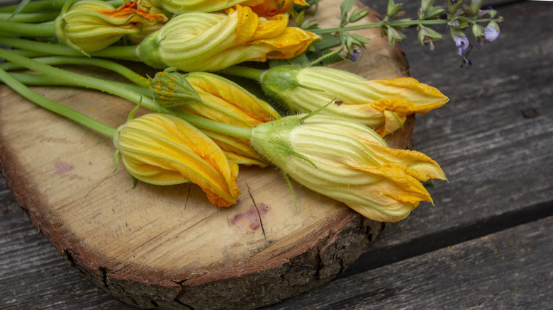 When you're working on your next Mexican specialty, you can use squash blossoms in numerous ways. One of the most popular and delicious recipes is quesadillas with flor de calabaza or squash blossom quesadillas, which simply requires you to fold the cooked blossoms into melted cheese. On chilly days, you can't go wrong with a squash blossom soup or a squash blossom-stuffed tamal. These colorful flowers are also excellent substitutions when you want to prepare vegetarian dishes. Replace the chicken or beef with cooked squash blossoms in enchiladas or tacos, and you'll get a tasty, texture-filled version.