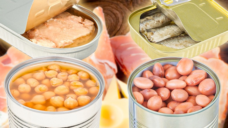 Charcuterie boards and charcuterie board styles of eating are a fantastic way to enjoy a wide variety of foods through a selection of meats, cheeses, crackers, and produce. Though it's often thought that fresh is best, we're here to champion the canned and tinned as viable, economical, and delicious options for your next charcuterie board. Canned ingredients are also brilliant time-savers, giving hosts the luxury of ease and a bit of extra time for selecting music, drinks, or just a bit of pre-entertaining pampering. Drawing from a number of cuisines, here are 16 canned ingredients to consider stocking up on for your next charcuterie board, snack, "Girl Dinner," or whatever you prefer to call it.