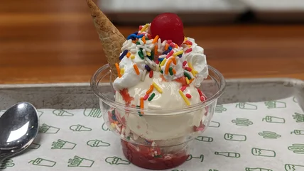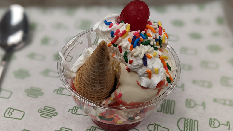 If you're wondering which sundae you should get, well, we recommend both. Make two visits, if needed. But, say that can't happen. If we could only have one, we're a little inclined to say the Strawberry Shortcake comes together with a more delightful array of flavors that are bright and melodious. It's all about the taste. While the shortcake provides some nice dry texture in a wet ride of fruitiness, its full function is, as Karangis promised, to springboard all those other flavors. The sprinkles will likely slide by you, but boy does it all come together well.