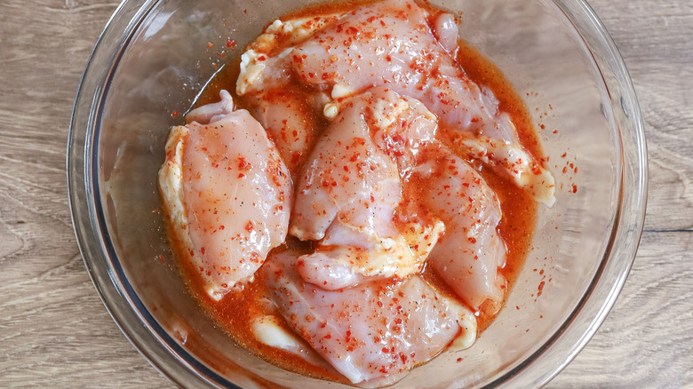 Morone tells us that this harissa chicken recipe is really pretty easy to make. In fact, she sums it up for us in a single sentence: "You just mix up a quick marinade, let the chicken sit in it for a half hour, and then bake it." Even with the time out for marinating, you can have this chicken dish on the table in just over an hour and the actual hands-on work involved is minimal. The combination of sweet, spicy, and tangy tastes, however, results in a maximum level of flavor.