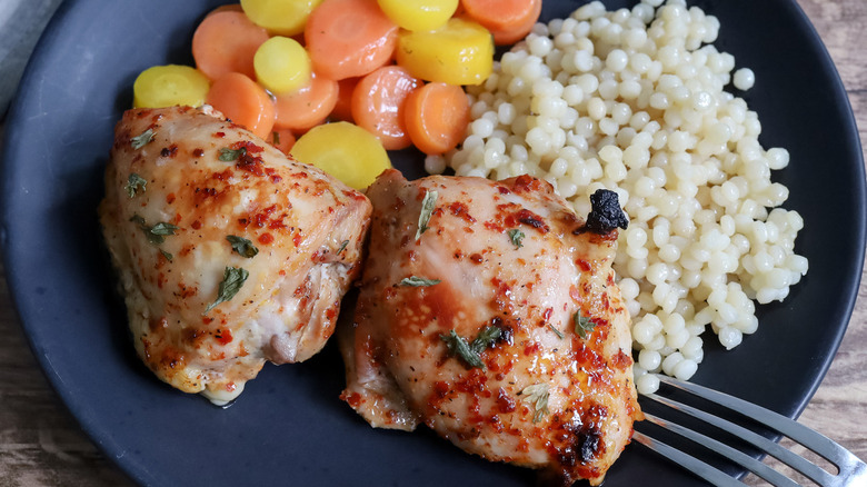 As this chicken dish is pretty easy to prepare and doesn't take that much time to make, Morone tells us, "It's a great weeknight meal." While she also feels that it "goes with pretty much everything," she says she likes to serve it with couscous, calling this side, "one of my favorite things in general." You could also serve it with rice or potatoes if you wish, plus any vegetables you have on hand.