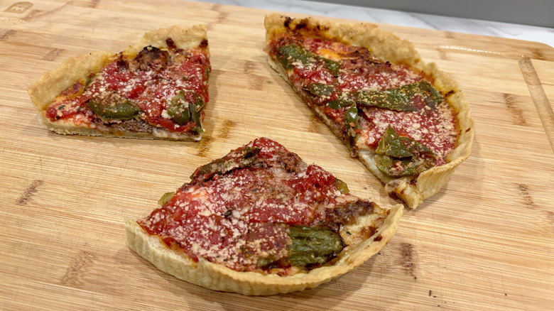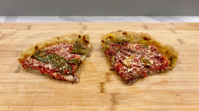 Following the provided cooking instructions to the letter, we eagerly awaited the result, and the pizzas did not disappoint. Often, frozen pizzas just don't seem to get anywhere near the taste, feel, and texture of a freshly made alternative, but these pizzas defy that stereotype. The crust strikes a delicious balance between crispiness and suppleness: It's robust and crunchy, mirroring the desired qualities of a quintessential deep-dish crust, yet tender enough to simplify the slicing process.