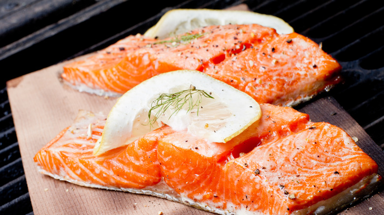 While neutral oils like vegetable oil are good for high-heat searing, and olive oil may be tempting to use for its health benefits, butter is ideal for cooking and basting sockeye salmon for optimal flavor and a heavenly texture. The butter will seep into the pinkish-red flakes of fish and elevate its taste, and it's easy to incorporate whether you're pan-frying, baking, grilling, or even poaching your fish.