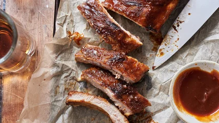 The barbecue sauce can also be made in advance and stored for up to a week (this recipe is great for proactive hosts). Stir together the sauce until thick, then transfer to a jar and allow to cool before adding a lid and storing in the refrigerator. When using the barbecue sauce for the ribs, pour a portion of the sauce into a bowl to brush onto the ribs so that the remaining sauce can be stored without the risk of cross-contamination. That way, you can brush this barbecue sauce onto burgers, toss it with chicken wings, drizzle it over mac and cheese, or use it to make baked beans.