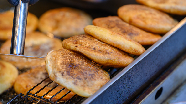 Originally, the doughy creation was cooked in a small furnace. However, after the Korean War, the arrival of inexpensive sugar and wheat from the Americans — alongside the popularization of cooking in oil — turned the dish into a streetside classic. Varying regional renditions appeared, and the food gained esteem as a winter treat. Although the closing of many street food stalls for the 1988 Seoul Olympics lessened the food's prevalence, it thankfully didn't erase it — and you can continue to find hotteok as an affordable snack from street vendors around South Korea.